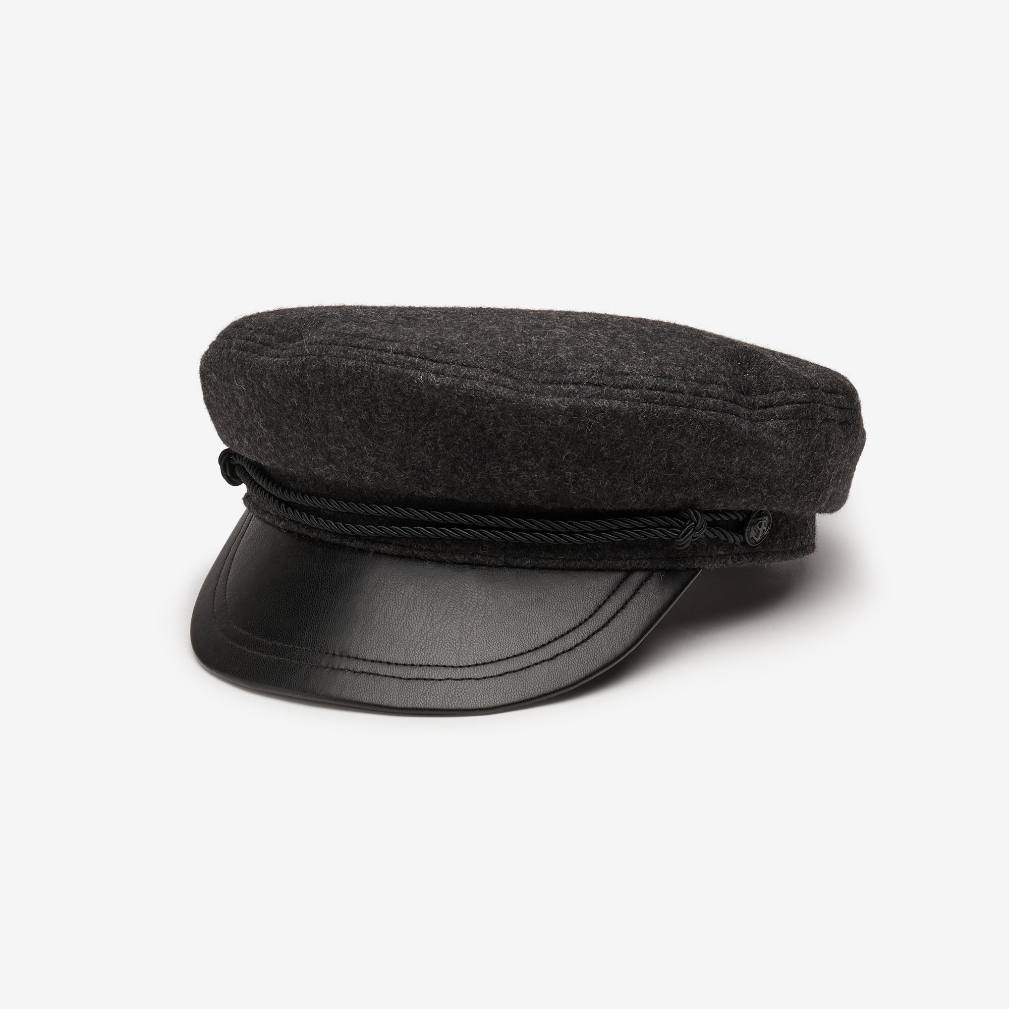Wool vintage inspired captains cap with rope and button detail